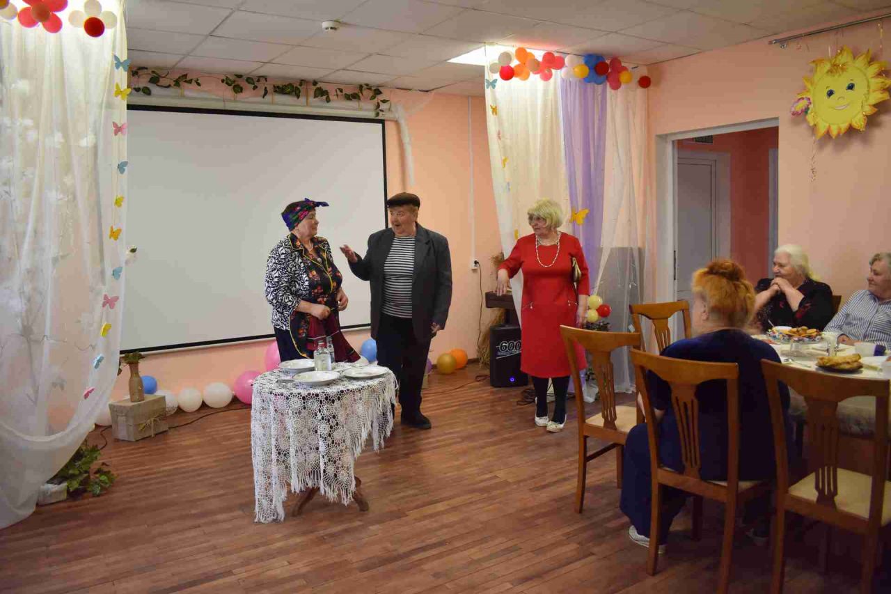 Приветствовали гостей из Хиславичского района хор участников клуба «Золотого возраста» с веселой песней, которая сопровождалась танцем в их же исполнении. Заставила зрителей посмеяться сценка «Отучала бабка деда». Гости исполнили несколько песен. Чаепитие продолжалось за задушевной беседой. А когда заиграла гармонь в руках участницы КЗВ, усидеть за столом было невозможно, танцы продолжались до легкой усталости присутствующих, зажгли огонь молодости в их глазах.
