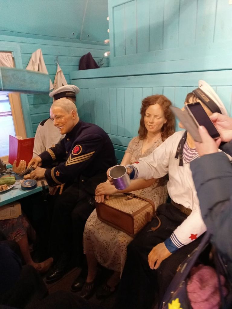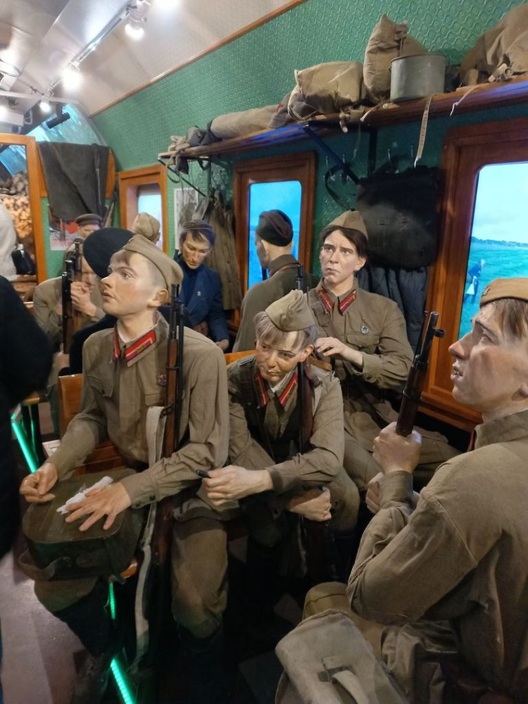 Необычный музей посетили участники «Клуба золотого возраста». Экскурсия представляет собой переход из вагона в вагон. В каждом вагоне поезда-музея воссоздана атмосфера драматических событий Великой Отечественной войны, а созданные композиции передают ужасы этой войны, память поколений. Всего представлено 4000 экспонатов, которые можно трогать, фотографировать, погружаясь в атмосферу того времени.