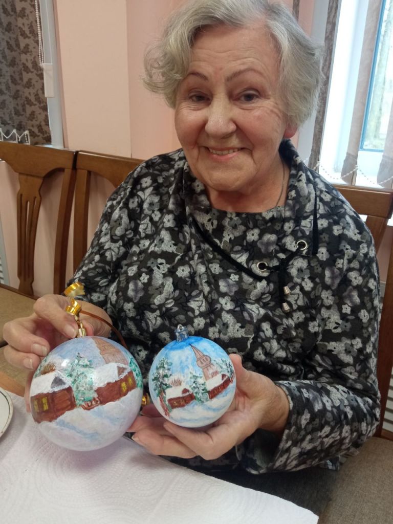Мы очень рады, что Сергеева Зоя Тихоновна стала участником марафона доброты. Смотришь на шар расписанный в природных мотивах и кажется, что окунулся в зимний деревенский вечер, спокойную и размеренную жизнь жителей деревни.