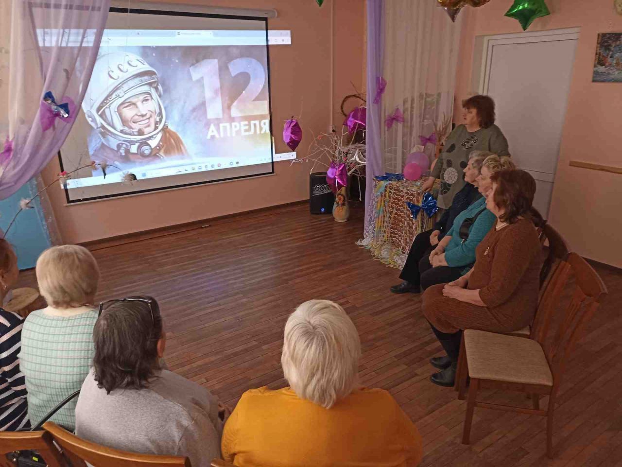 В преддверии Дня космонавтики в «Клубе золотого возраста» прошла акция «Погружение в глубины Вселенной» виртуальное путешествие ко дню космонавтики. Еще прослушали рассказ о жизненном пути великого человека – первого космонавта, о таинственном мире еще не разгаданных тайн Вселенной, познакомились с людьми, благодаря которым человек осуществил свою заветную мечту полететь в космос, с самыми знаменитыми в мире пассажирами космического корабля с собаками Белкой и Стрелкой.